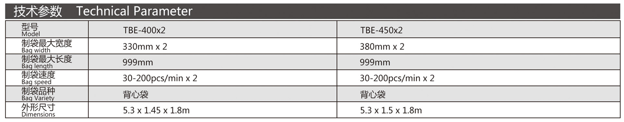機器特性 該機適用于對高密度聚乙烯(HDPE),低密度聚乙烯(LDPE)簡狀本色和彩印塑料薄膜進行熱封熱切制袋,雙刀雙道生產(chǎn)線,配備機械手自動沖,從送料、封底、切斷、沖口折袋、輸送一次性